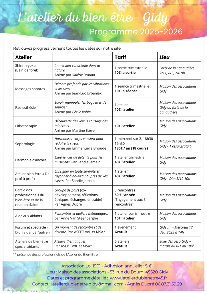 Programme 2025-2026 – 5 € d’adhésion (par année civile)